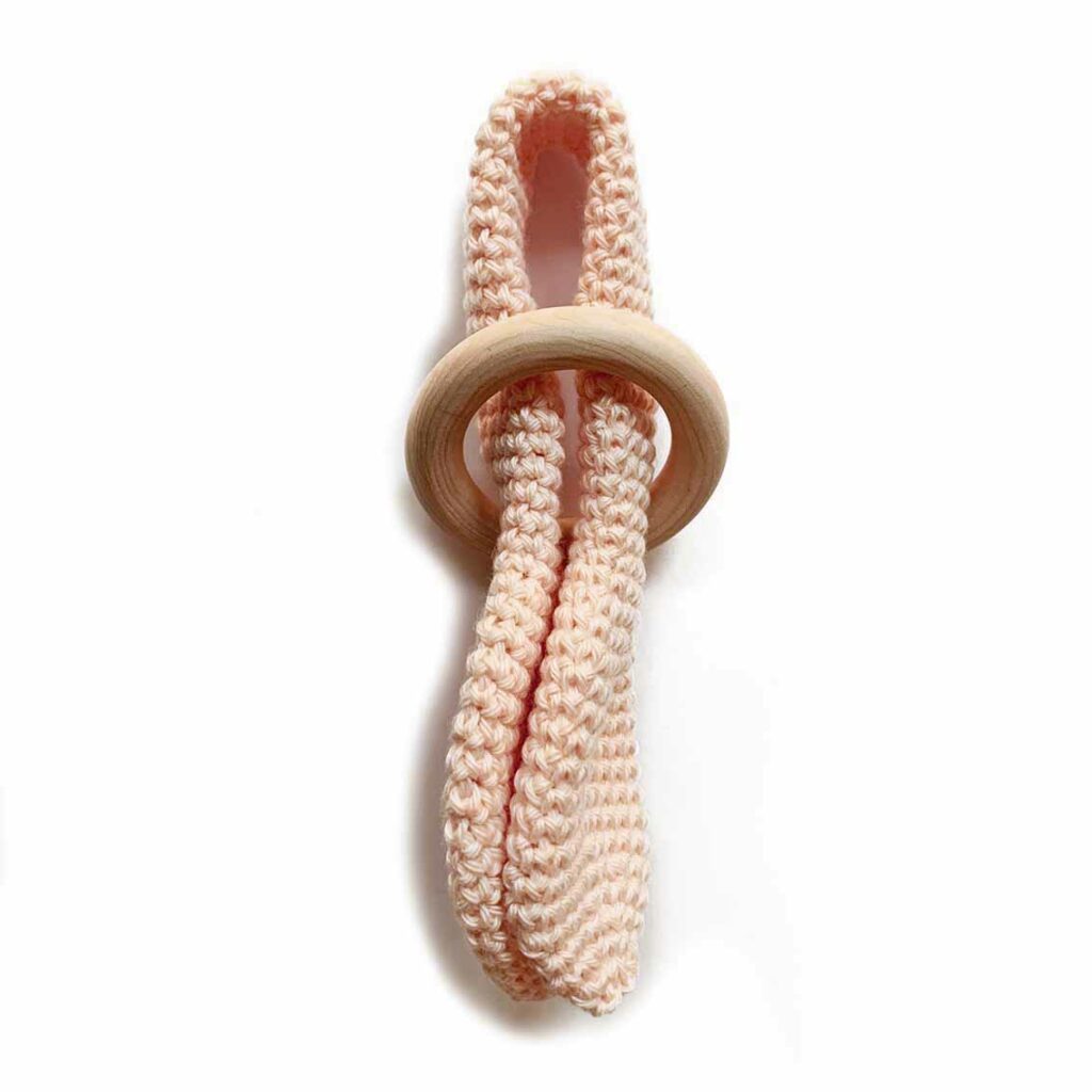De bijtring konijn is een mooi project om kennis te maken met rond haken.